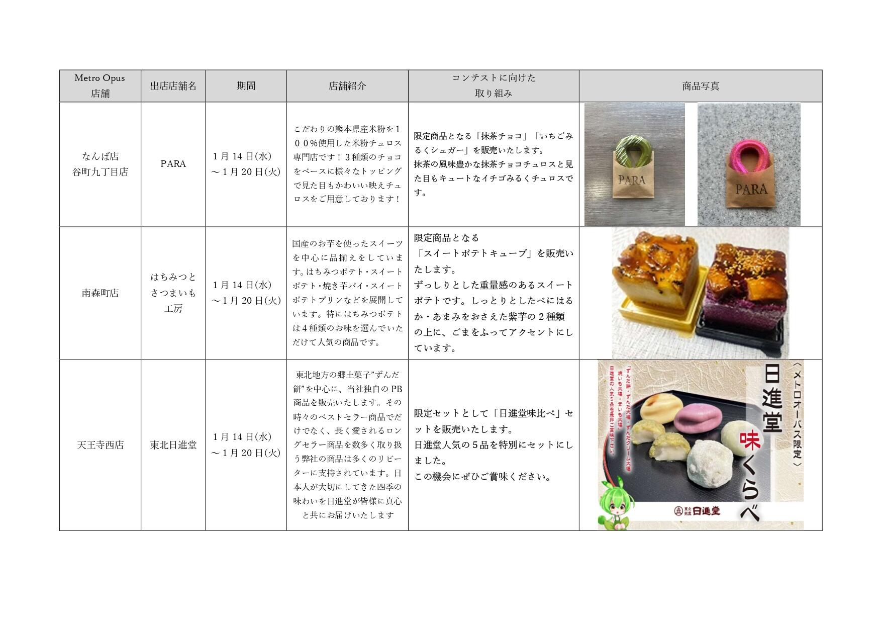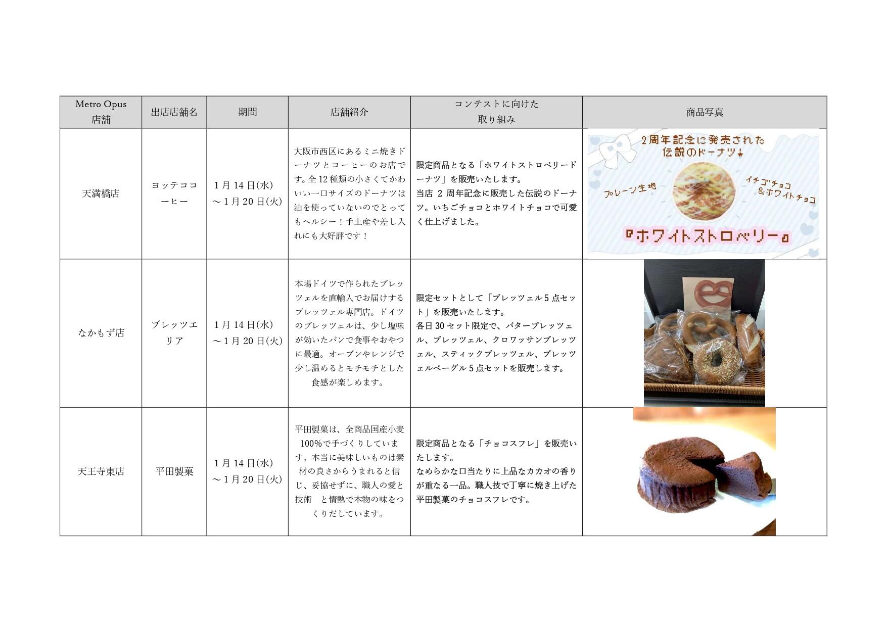1月12日週のコンテストに向けた出店者の取り組みは以下の通りです。是非この機会にお立ち寄りください。